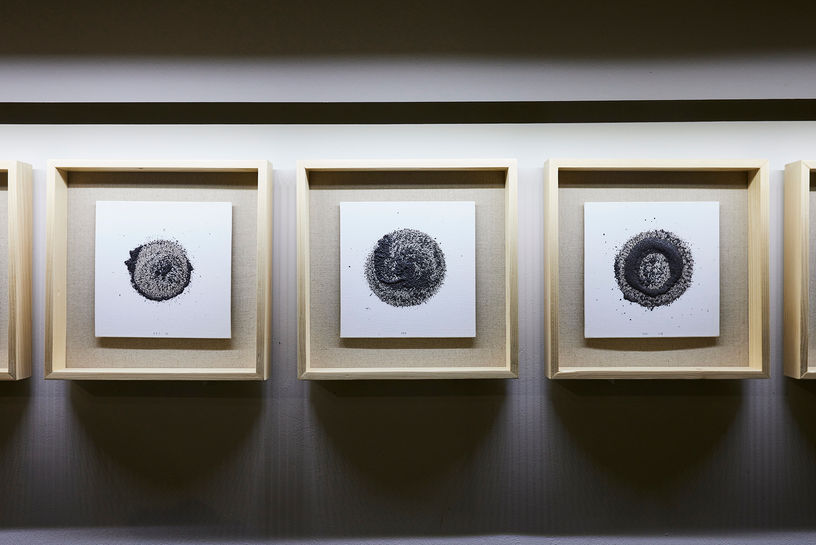 이것은 마치 무심하게 돌아가는 사회 속에서 끊임 없이 순환을 반복하며 점을 찍는 개인의 역사가 그리는 이미지이자, 지속적으로 존재가치를 확인하고자하는 작가의 노동에 의한 결과물이다.
